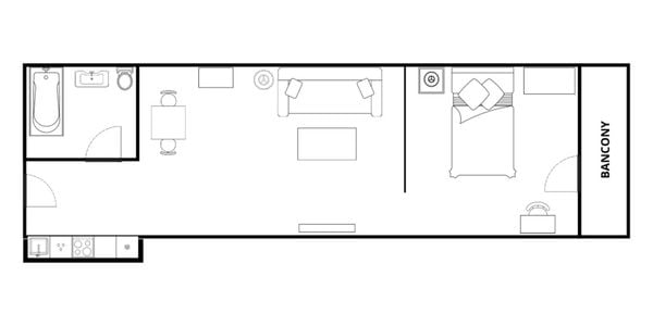 • 寝室:1室、ダブルベッド1台