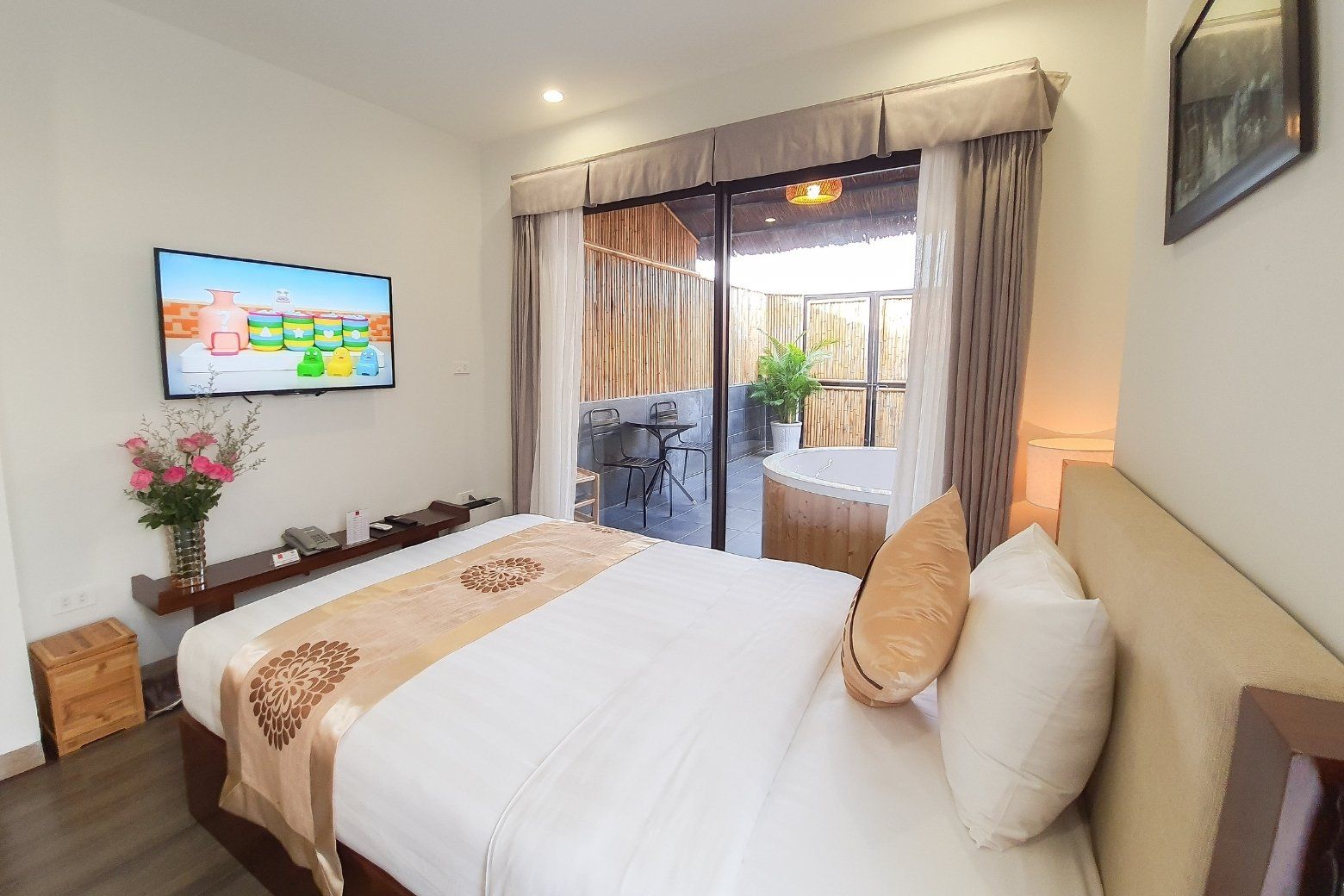客室と同面積のバルコニーがあり、そこには露天風呂が設置されています。